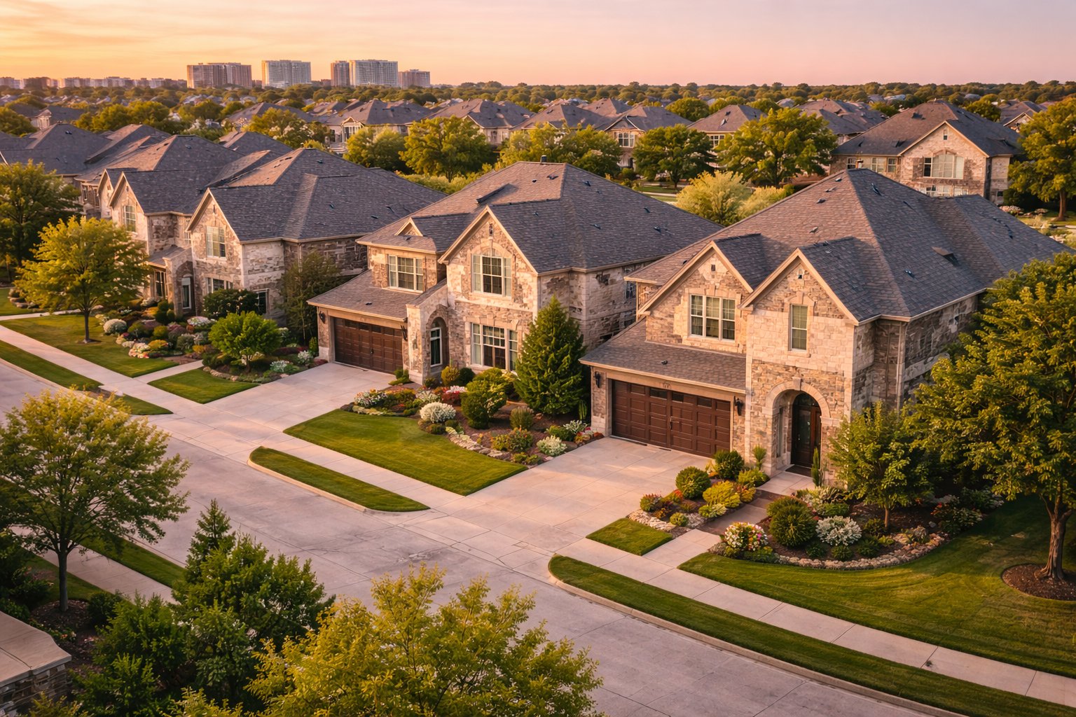 Typical suburban architecture found throughout Frisco communities and HOA consistency are part of Frisco’s long-term positioning.